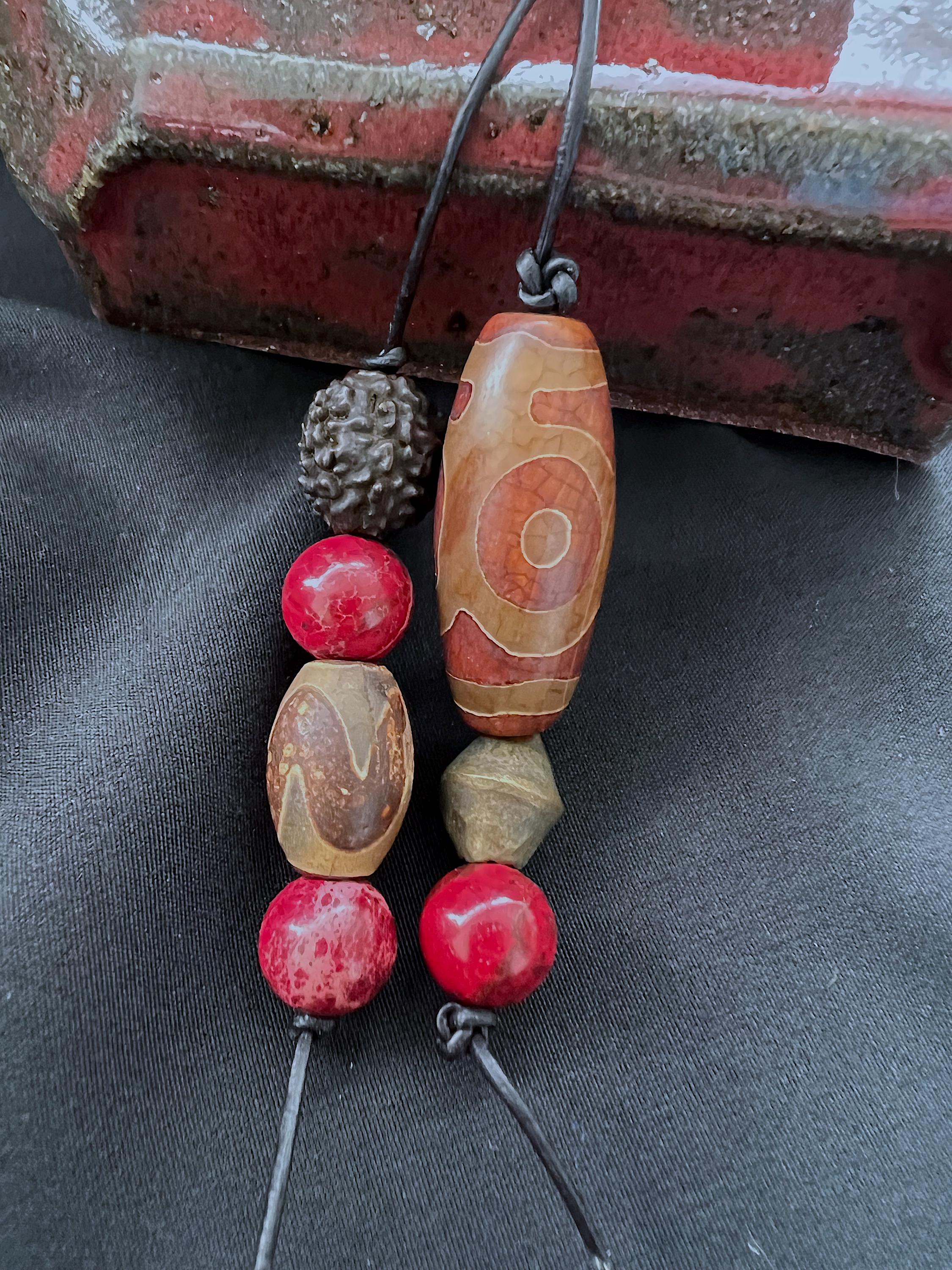 Tibetan agate beads. Agate is a healing and protection stone, and has been used in many cultures since ancient times. It helps with emotional healing and clarity of thought.