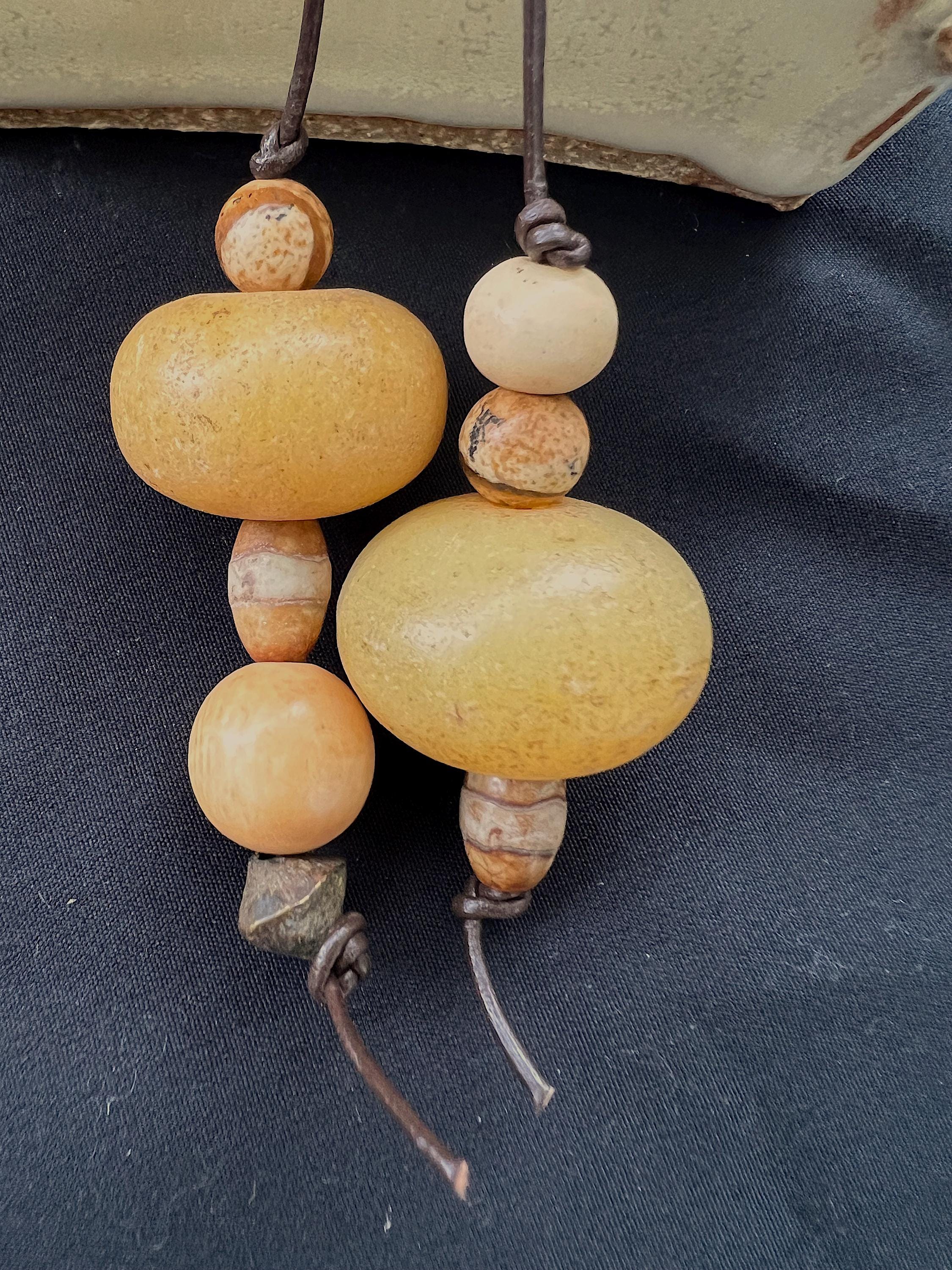 The vintage beads may show some wear ( chips, scratches, etc. ) as would be expected based on their age. These are not considered defects but enhancements: they have been loved by many owners and travelled far. Leather cord attaches them to the box.